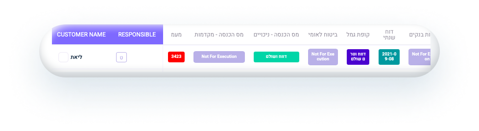 באמצעות המערכת תוכל להשאר מחובר לסטטוס של כל אחד מהלקוחות שלך. המערכת ניתנת להתאמה אישית כך שהמידע שיוצג תמיד יהיה רלוונטי עבורך