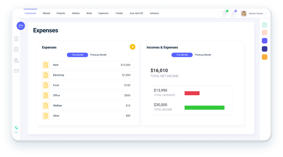 לוח הבקרה החכם שלנו ניתן להתאמה ועריכה כך שהמידע שיוצג יהיה רלוונטי עבורך. באמצעות לוח הבקרה תוכל להיות בקשר מתמיד עם הסטטוס החי של כלל הפעולות בעסק- מעקב אחר הוצאות, משימות פתוחות, הודעות ועוד. ניתן לפלח ולהציג את הנתונים בכל דרך בה תבחר- תצוגה מספרית או גרפית, בפילוח יומי, שבועי או חודשי. כל הנתונים להם אתה זקוק במקום אחד ובתצוגה שקופה ונוחה.